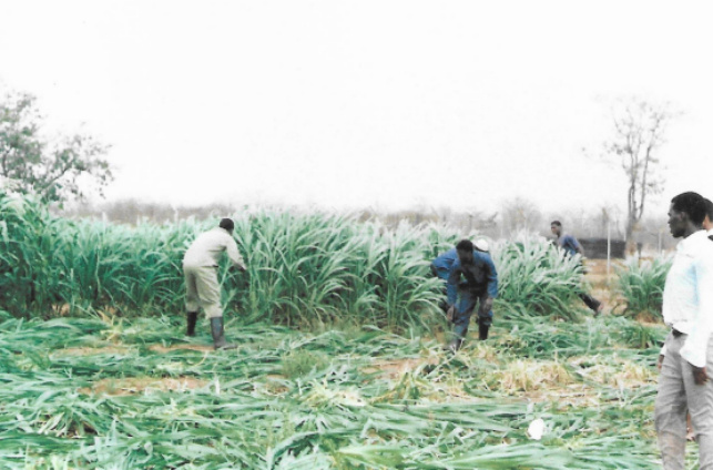 Tijdens die periode konden we ook praktijkonderzoek verrichten op het meerjarige, verhoutende reuzengras Miscanthus giganteus. De overeenkomsten tussen Miscanthus giganteus en Napier gras (Oost-Afrika en Zuidelijk Afrika) zijn dermate groot, dat we er ons snel van bewust werden dat de werkervaring met Miscanthus giganteus ook nuttig kon zijn voor die streken in de (sub)tropen waar wordt gewerkt met Napier gras. Zelf geteeld Napier gras is immers een belangrijk groenvoer op veel kleinschalige melkveebedrijven in landen zoals Kenia, Tanzania en Zimbabwe.